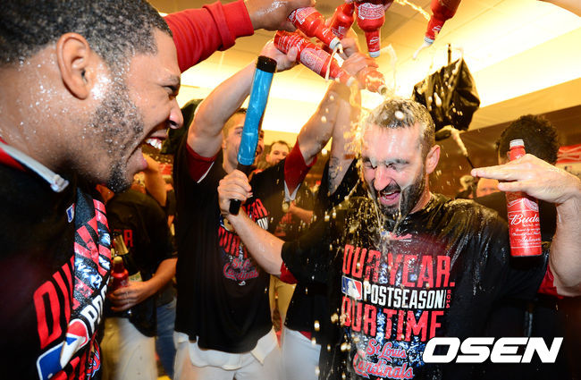 세인트루이스 선수들이 클럽하우스에서 샴페인 세리머니를 하고 있다./jpnews@osen.co.kr