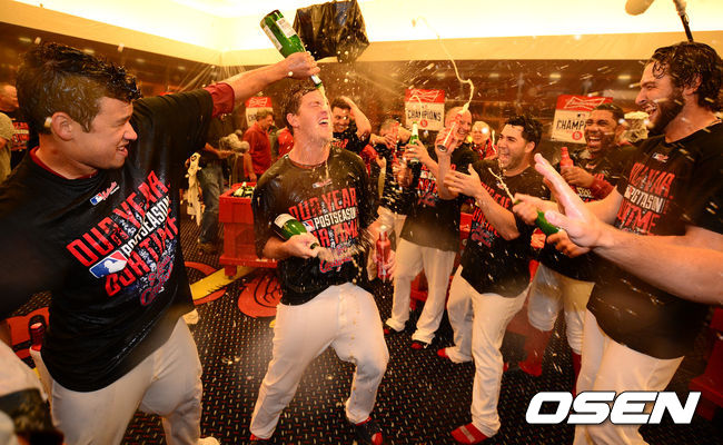 세인트루이스 선수들이 클럽하우스에서 샴페인 세리머니를 하고 있다./jpnews@osen.co.kr