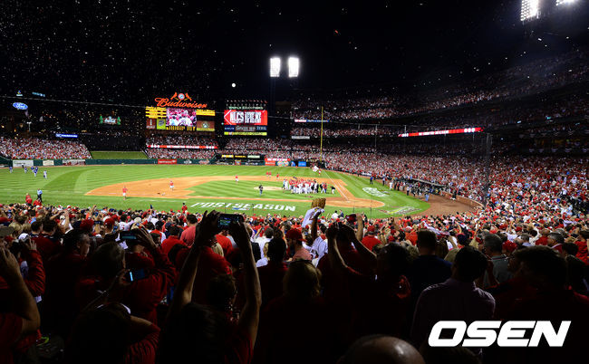 세인트루이스 선수들이 팬들과 승리를 기뻐하고 있다./jpnews@osen.co.kr
