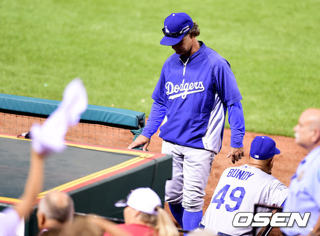 8회말 다저스 매팅리 감독이 투수교체를 마치고 더그아웃으로 향하고 있다./jpnews@osen.co.kr
