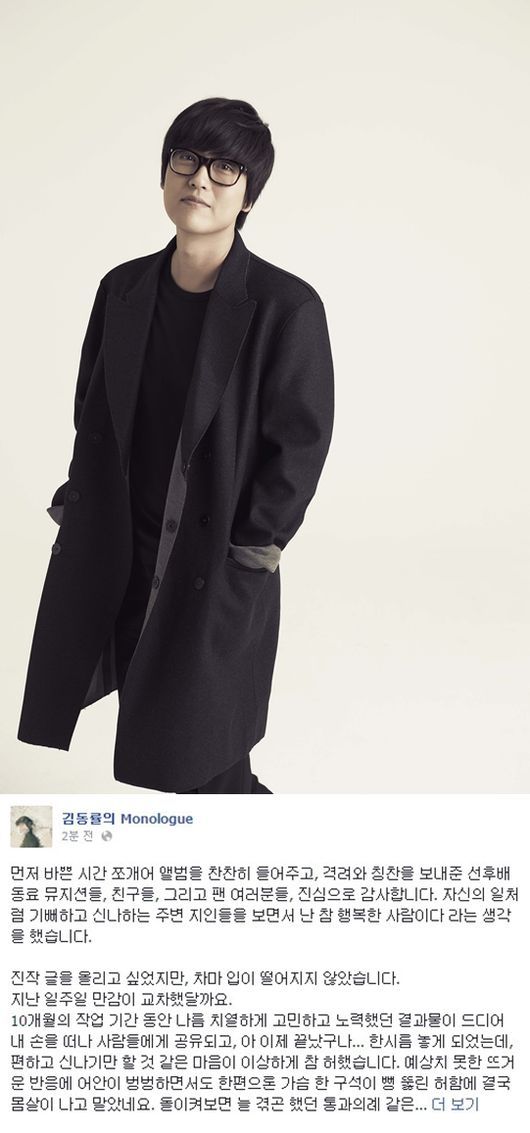 김동률은 8일 오전 자신의 페이스북을 통해 지난 1일 발매한 솔로 정규 6집 ‘동행’을 향한 관심에 대한 장문의 글을 게재했다.