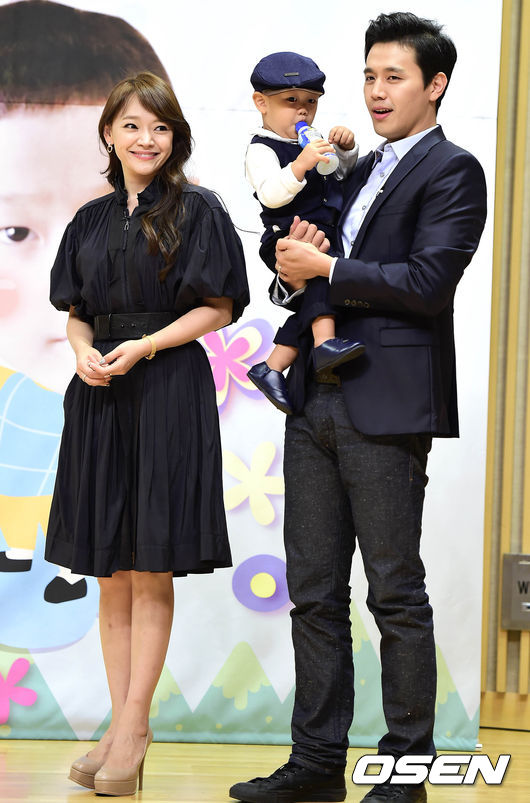 8일 오후 서울 목동 SBS 홀에서 열린 예능 패밀리 육아 리얼리티 쇼 '오마이베이비' 기자간담회에서 손준호,김소현 부부와 아들 손주안이 포토타임을 갖고 있다.