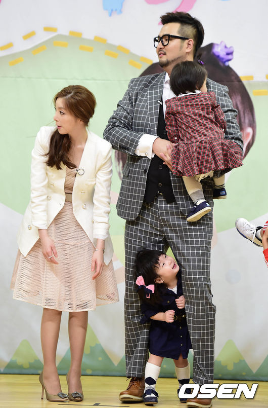 8일 오후 서울 목동 SBS 홀에서 열린 예능 패밀리 육아 리얼리티 쇼 '오마이베이비' 기자간담회에서 김태우,김애리,김소율,김지율 가족이 포토타임을 갖고 있다.