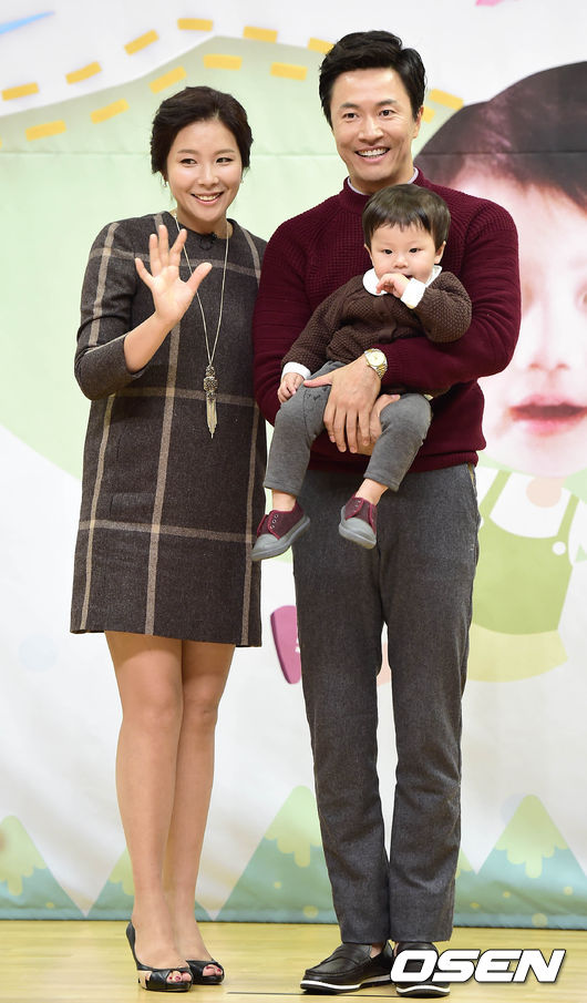 8일 오후 서울 목동 SBS 홀에서 열린 예능 패밀리 육아 리얼리티 쇼 '오마이베이비' 기자간담회에서 김정민, 타니 루미코 가족과 아들 김담율이 포토타임을 갖고 있다.