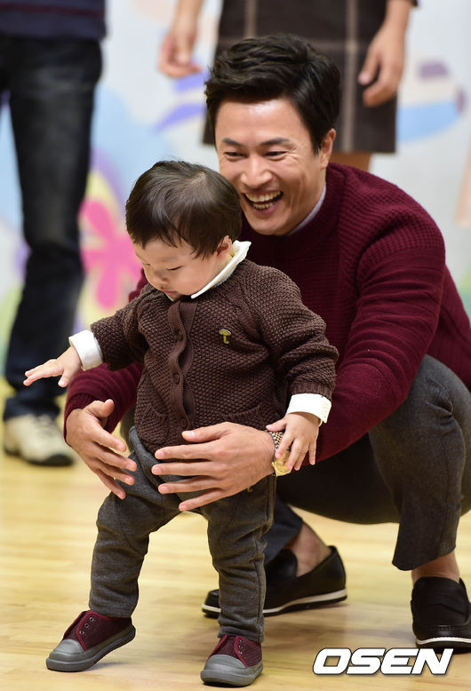 8일 오후 서울 목동 SBS 홀에서 열린 예능 패밀리 육아 리얼리티 쇼 '오마이베이비' 기자간담회에서 김정민과 아들 김담율이 포토타임을 갖고 있다.