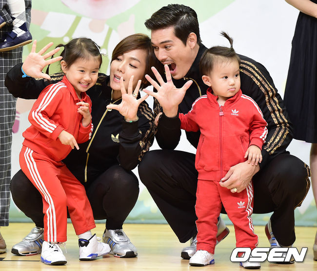8일 오후 서울 목동 SBS 홀에서 열린 예능 패밀리 육아 리얼리티 쇼 '오마이베이비' 기자간담회에서 리키김,류승주 부부와 자녀 태린,태오가 포토타임을 갖고 있다.