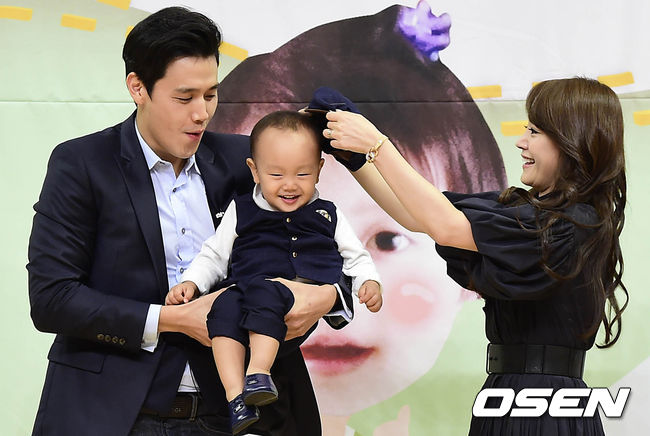 8일 오후 서울 목동 SBS 홀에서 열린 예능 패밀리 육아 리얼리티 쇼 '오마이베이비' 기자간담회에서 김소현,손준호 부부와 아들 손주안이 포토타임을 갖고 있다.