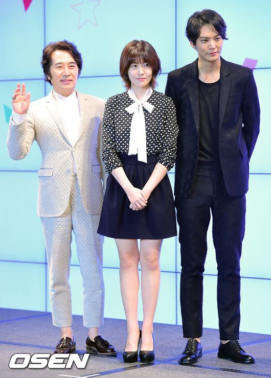 8일 오후 서울 동대문 JW 메리어트호텔에서 진행된 KBS 2TV 새 월화드라마 '내일도 칸타빌레' 제작발표회에서 배우 백윤식과 심은경, 주원이 포즈를 취하고 있다.