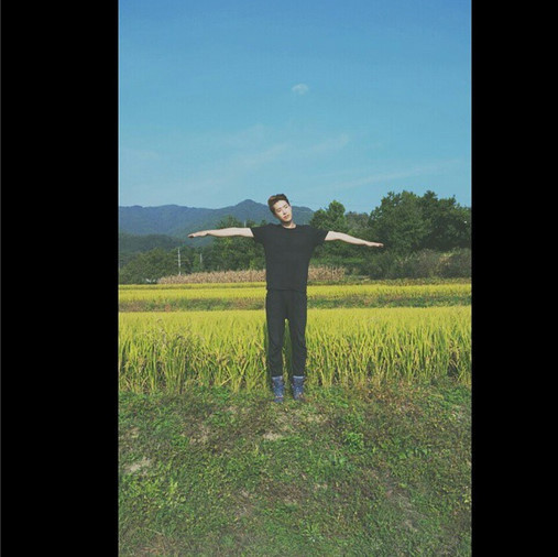 공개된 사진 속 박민우는 황금빛 들판을 배경으로 허수아비처럼 팔을 넓게 벌린 채 꼿꼿하게 서있는 모습이다. 특히 그는 검은 티셔트와 바지만으로도 멀리서도 눈에 띄는 우월한 비율을 자랑해 눈길을 끈다.
