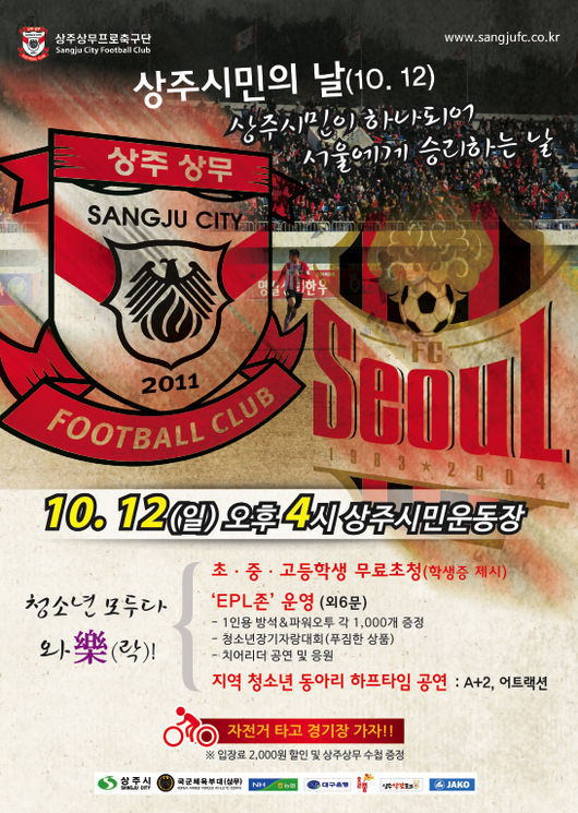 상주상무프로축구단(대표 이재철)과 FC서울의 2014 현대오일뱅크 K리그 클래식 31라운드에서 상주시민의 날을 맞아 청소년들을 경기장으로 초청한다.