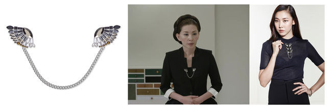 또한 런웨이와 방송계를 종횡무진 중인 모델 한혜진은 같은 ‘볼럽트’ 브로치 3개를 레이어링하여 밋밋해 보일 수 있는 블랙 의상을 세련되게 연출하였다.