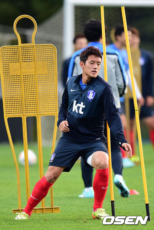 축구대표팀 홍철이 8일 오후 파주 NFC(국가대표 트레이닝센터)에서 훈련을 하고 있다.