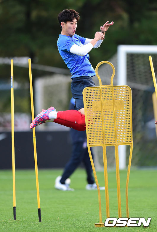 축구대표팀 손흥민이 8일 오후 파주 NFC(국가대표 트레이닝센터)에서 훈련을 하고 있다.