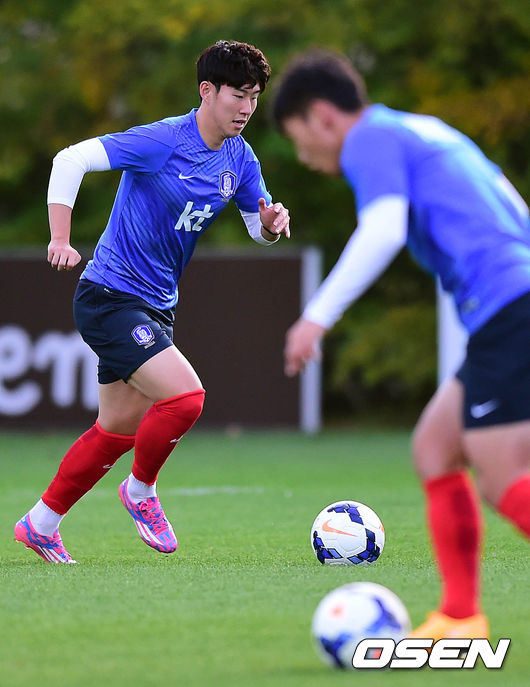 축구대표팀 손흥민이 8일 오후 파주 NFC(국가대표 트레이닝센터)에서 훈련을 하고 있다.