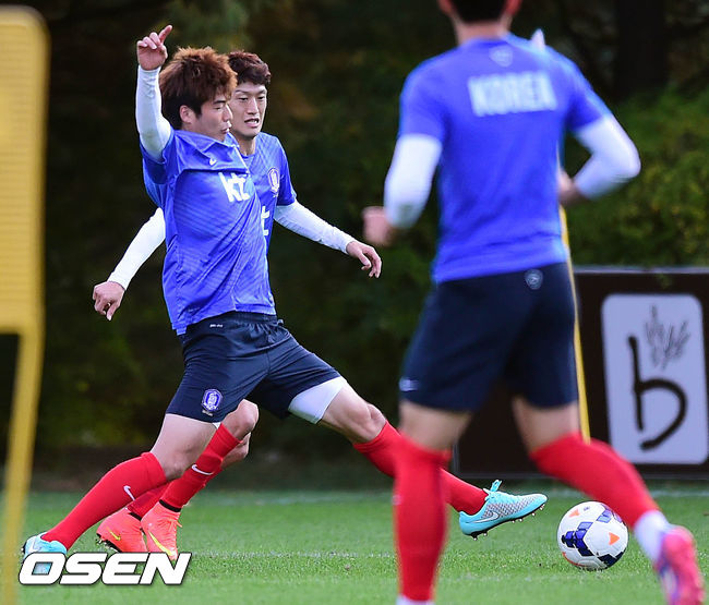 축구대표팀 기서용-이청용이 8일 오후 파주 NFC(국가대표 트레이닝센터)에서 훈련을 하고 있다.