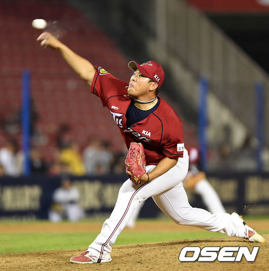8회말 무사 KIA 임준혁이 힘차게 공을 던지고 있다.