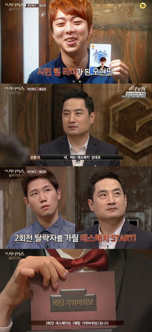 이날 승리팀으로부터 데스매치 진출자로 지목된 강용석은 김경훈을 데스매치 상대로 지목해 생존을 건 게임을 하게 됐다. 데스매치는 '배팅 가위바위보'로 결정됐다.