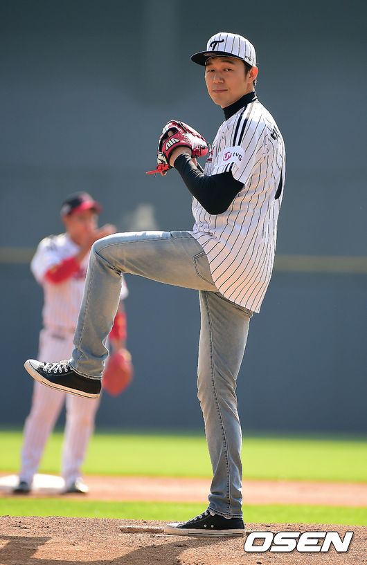 'LG 명예 선수' 배우 박성웅의 멋진 와인드업
