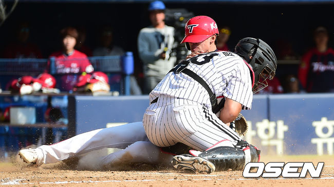 9일 오후 서울 잠실야구장에서 '2014 한국야쿠르트 세븐 프로야구' LG 트윈스와 KIA 타이거즈의 경기가 열렸다. 2회초 1사 2,3루 LG 최경철이 KIA 이범호의 유격수 앞 땅볼때 홈으로 쇄도하는 3루주자 강한울을 아웃시키고 있다. LG 트윈스는 우완 선발투수 코리 리오단을 선발투수로 내세웠다. 리오단은 올 시즌 26경기 161⅔이닝을 소화하며 9승 10패 평균자책점 3.67을 기록 중이다. KIA를 상대로 특히 강했는데, KIA와 5번 맞붙어 30⅓이닝을 던지면서 3승 1패 평균자책점 3.56을 올렸다. 한국무대 첫 승도 KIA전이다. 리오단은 지난 4월 27일 잠실 KIA전에서 8이닝 1실점으로 맹활약을 펼친 바 있다. KIA는 좌완 선발투수 저스틴 토마스를 선발 등판시킨다. 후반기 KIA에 합류한 토마스는 8경기서 36이닝을 던지며 1승 2패 평균자책점 4.00을 올렸다. 지난 8월 22일 LG전에선 6이닝 2실점으로 비록 승리투수가 되지는 못했지만 자기 몫을 다했다. KIA가 토마스의 호투에 힘입어 4연패서 탈출할 수 있을지 주목된다. 한편 양 팀은 올 시즌 상대전적 9승 6패로 LG가 KIA에 우위를 점하고 있다. / youngrae@osen.co.kr