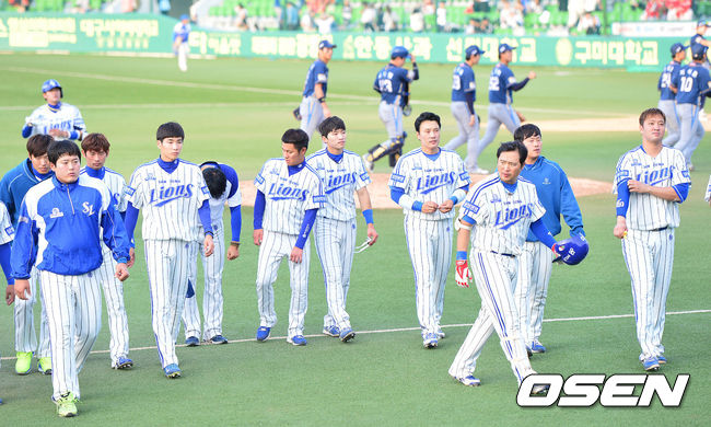 삼성 선수들이 팬들에게 인사한 뒤 그라운드를 나서고 있다./dreamer@osen.co.kr