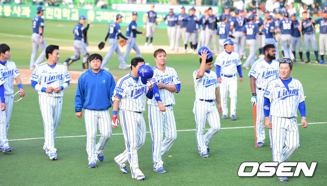 삼성 선수들이 팬들에게 인사한 뒤 그라운드를 나서고 있다./dreamer@osen.co.kr