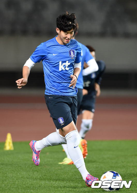 한국 손흥민이 훈련을 하고 있다.