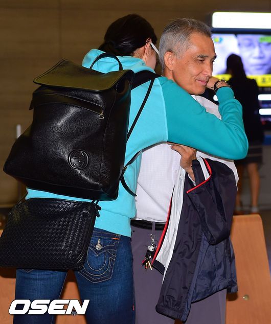김연경이 아버지 김동길씨와 포옹을 하고 있다