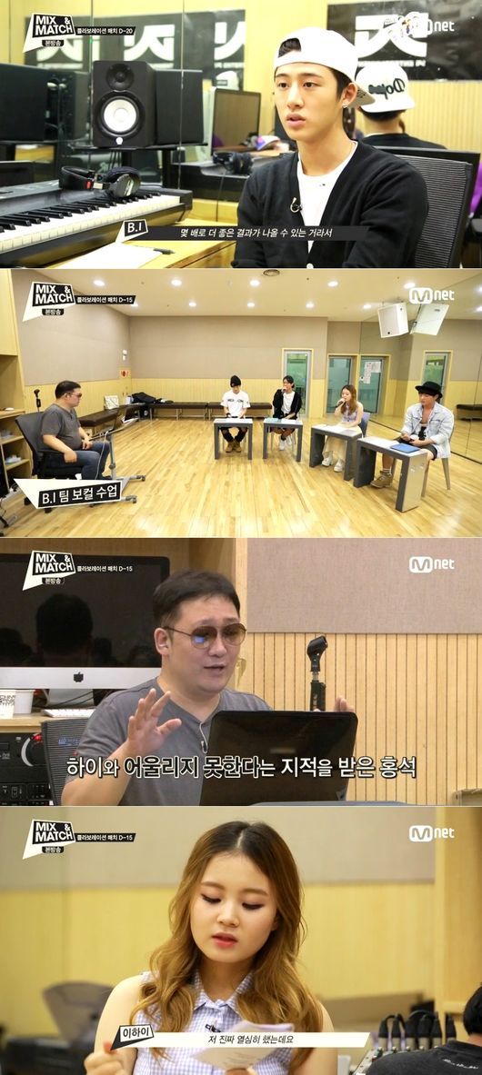 ‘믹스앤매치’ 비아이 팀이 콜라보레이션 미션 연습을 하며 애를 먹었다.