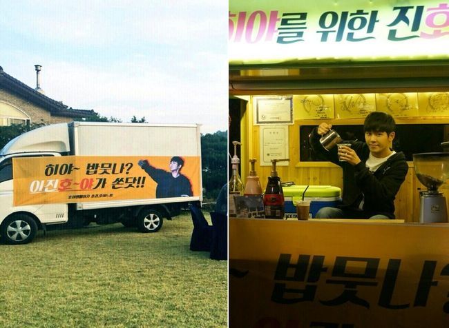 공개된 사진 속에는 호야를 위해 팬들이 마련한 특별한 커피차의 모습이 담겨있다. 이어 공개된 사진에서는 호야가 직접 커피를 타며 흐뭇한 미소를 지어보이고 있어 눈길을 끌었다.