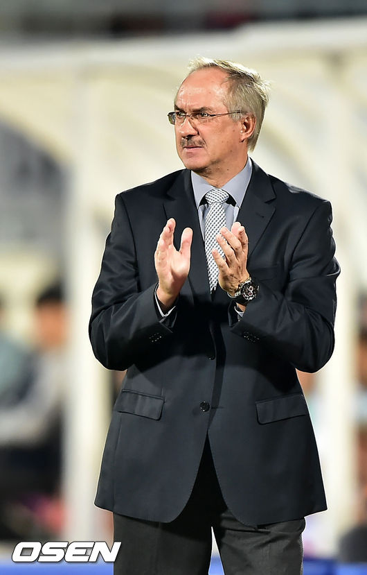 10일 오후 천안종합운동장에서 열린 한국과 파라과이의 평가전, 한국 슈틸리케 감독이 박수를 보내고 있다.