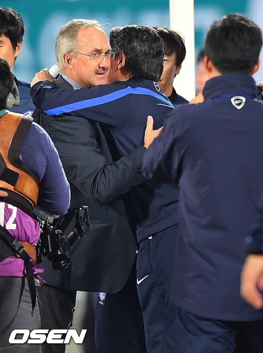 경기종료 후 슈틸리케 감독이 코치들과 하이파이브를 하고 있다. / soul1014@osen.co.kr