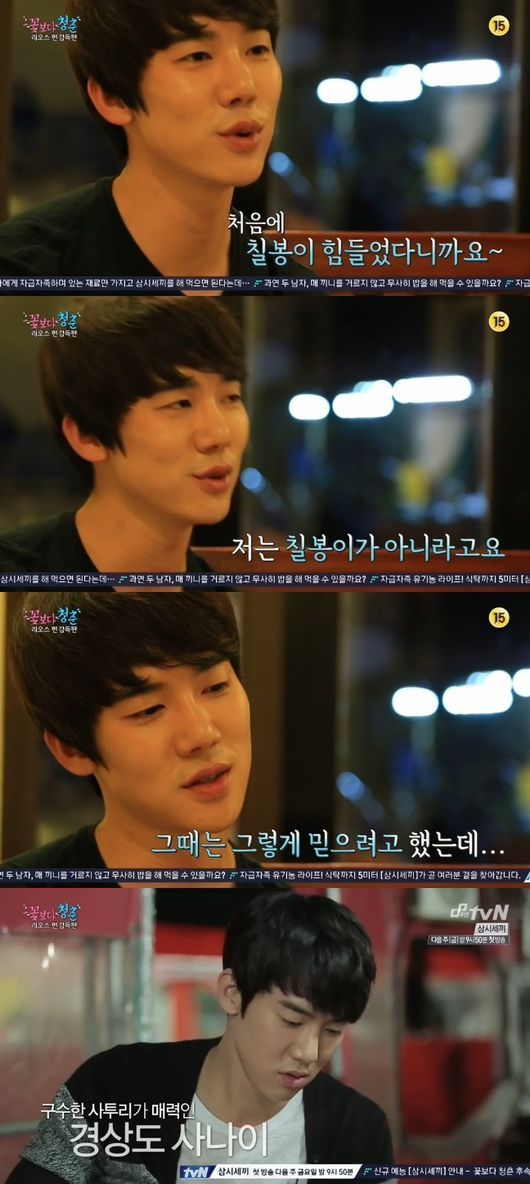 유연석은 10일 오후 방송된 tvN ‘꽃보다 청춘 감독판 in 라오스’에서 '응답하라 1994' 속 서울남자 칠봉이 역할이 사실 힘들었다는 깜짝 고백을 했다.