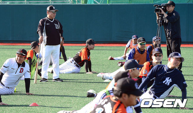 현대차 더 브릴리언트 베이스볼 클래식 2014 전국 결선토너먼트 기념 '김성근 감독과 함께하는 현대자동차 사회인야구 클리닉' 행사가 11일 고양 국가대표 훈련장에서 열렸다. 고양 원더스 김광수 수석 코치가 참가자들의 스트레칭을 지켜보고 있다. 클리닉 참가자들은 부상 방지 및 경기력 향상을 위해 올바른 스트레칭 방법을 익히고 각 포지션에 따라 투수, 포수, 야수, 타격 클리닉 등 실전 기술을 익히는 프로그램들을 체험한 후, 이벤트 경기를 통해 배운 내용들을 실제 경기에서 직접 활용해 보는 시간을 가질 예정이다. 이번 행사에는 '야신' 김성근 감독을 비롯해 고양원더스를 이끌었던 코치진이 참석, 개인별 맞춤형 교육을 진행해 참가자들의 만족도를 높일 계획이다. 한편 현대차는 2013년부터 국내 최대 규모의 사회인 야구대회인 '더 브릴리언트 베이스볼 클래식'을 후원하는 등 국내 사회인 야구 발전과 저변 확대를 위해 지속적으로 노력해 오고 있다. / youngrae@osen.co.kr