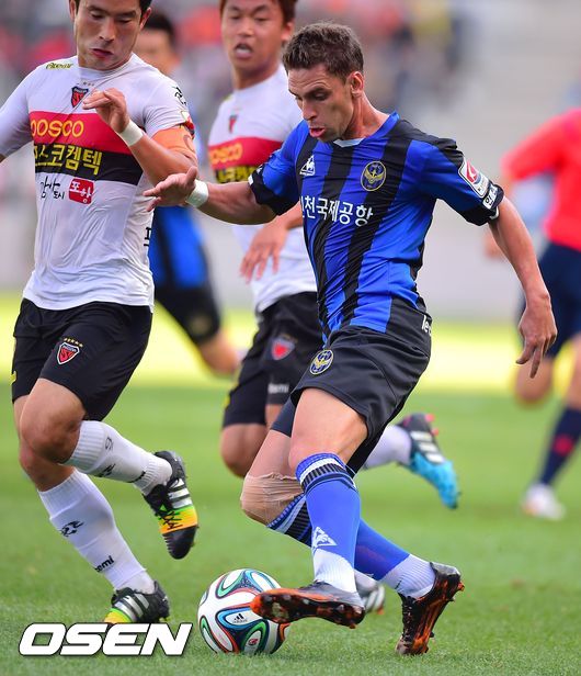 11일 오후 인천전용축구장에서 열린 현대오일뱅크 K리그 클래식 2014 인천과 포항의 경기, 전반 인천 이보가 드리블을 하고 있다.