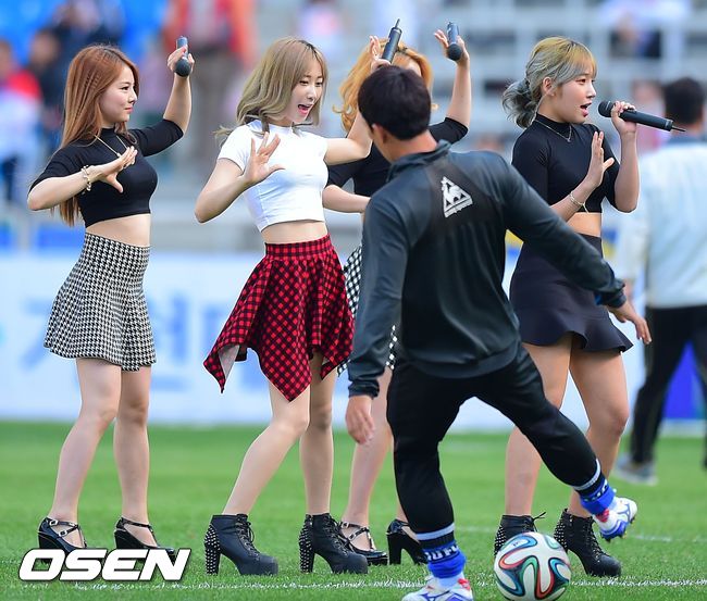 11일 오후 인천전용축구장에서 열린 현대오일뱅크 K리그 클래식 2014 인천과 포항의 경기, 하프타임때 걸그룹 메이퀸이 축하공연을 펼치고 있다.