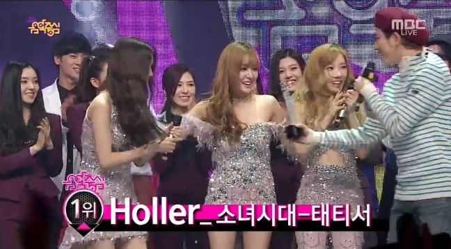 태티서가 11일 오후 방송된 MBC '음악중심'에서 '할라(holler)'로 에일리와 소유X어반자카파를 제치고 1위에 올랐다.