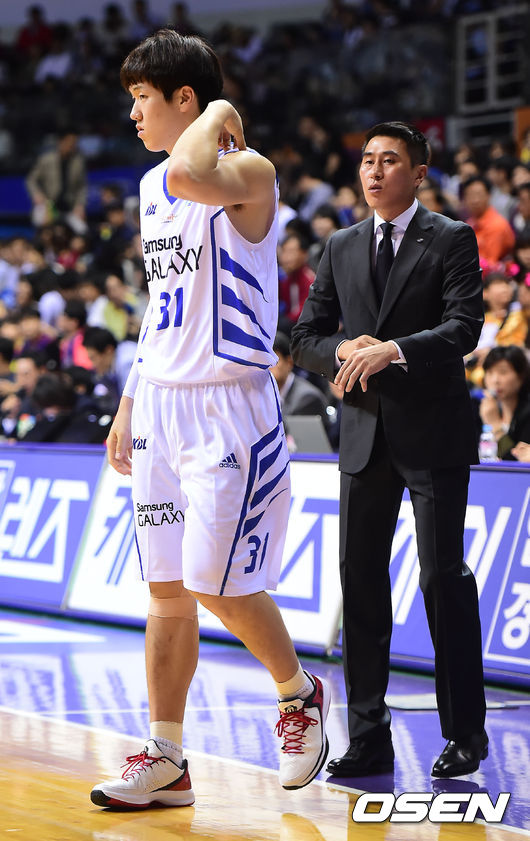 11일 오후 고양 실내체육관에서 '2014∼2015 KCC 프로농구' 고양 오리온스와 서울 삼성의 경기가 열렸다. 1쿼터 삼성 김준일이 이동준가 교체되어 코트로 들어가고 있다. 신인드래프트 1순위 이승현을 얻은 고양 오리온스는 이번 시즌에는 6강 이상의 성적을 노리고 있다. 추일승 감독은 "지난 2년 동안 6강에 머물렀다. 그 이상의 성적을 올리고 싶다"며 이번 시즌에는 6강 플레이오프 진출에 만족하지 않겠다고 밝혔다. 서울 삼성은 현역 시절 최고의 인기몰이를 했던 이상민 감독이 지휘봉을 잡고 명가재건에 나선다. 신인드래프트 2순위 센터 김준일을 얻은 삼성은 '이상민표' 신바람 농구를 선보일 수 있을지 궁금하다./ youngrae@osen.co.kr