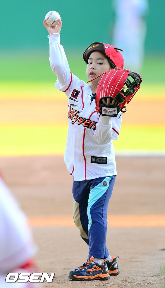 11일 오후 인천 문학구장에서 열린 2014 한국야쿠르트 세븐 프로야구 SK 와이번스와 넥센 히어로즈의 경기전 타블로와 하루가 시타 시구를 하고 있다.