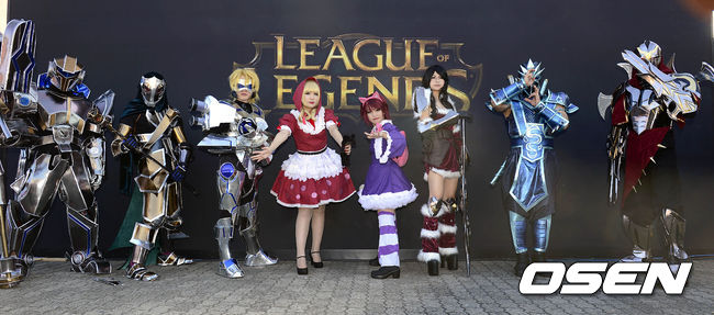 경기시작전 코스튬 행사로 CSL 팀이 게임 속 캐릭터로 분해 포토타임을 갖고 있다