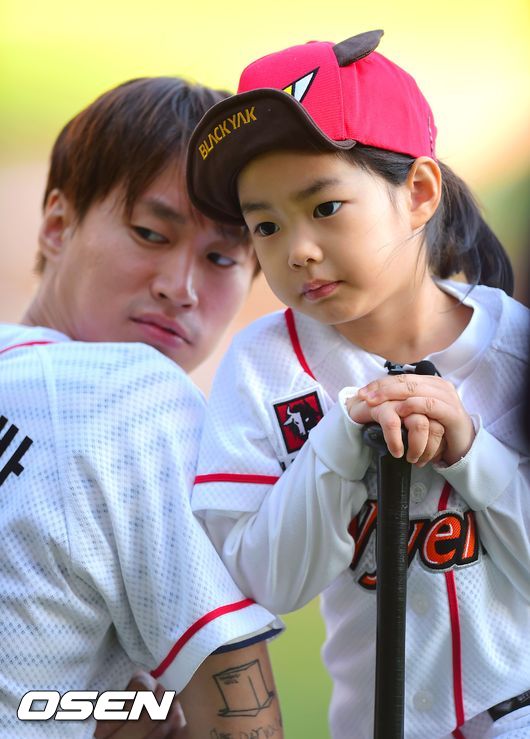 11일 오후 인천 문학구장에서 열린 2014 한국야쿠르트 세븐 프로야구 SK 와이번스와 넥센 히어로즈의 경기전 시구 나선 하루와 타블로가 포즈를 취하고 있다.