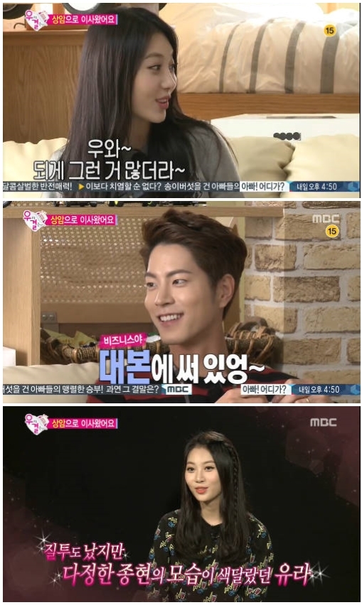 가상부부 유라와 홍종현은 11일 오후 방송된 MBC 예능프로그램 '우리 결혼했어요 시즌4'(이하 우결4)에서 상암동 새 신혼집으로 이사했다. 그곳에서 두 사람은 홍종현의 출연작인 MBC 주말드라마 '마마'에 대한 이야기를 나눴다.