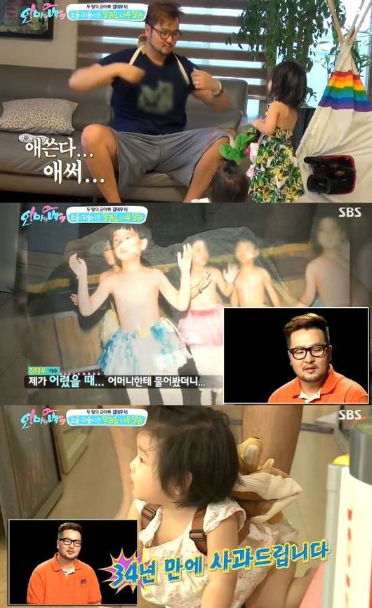 김태우는 11일 오후 방송된 SBS 예능프로그램 '오 마이 베이비'에서 자신의 말을 들어주지 않으면 바닥에 누워버리는 딸 때문에 우여곡절을 겪었다.