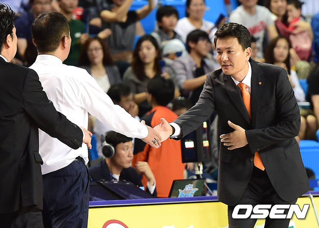 경기 종료 후 승리를 거둔 동부 김영만 감독이 KCC 허재 감독과 인사를 나누고 있다. /dreamer@osen.co.kr