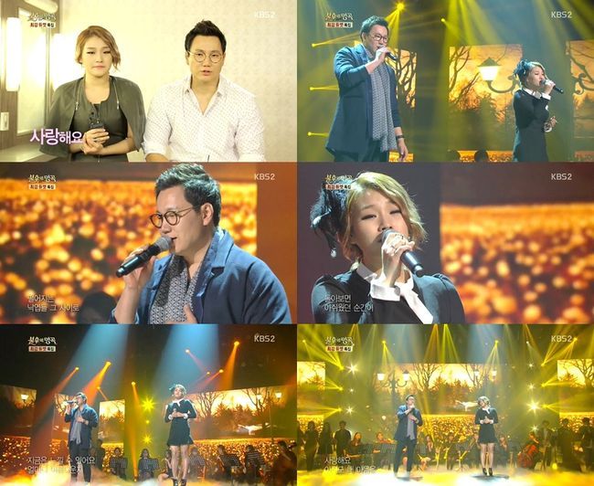 더 원과 손승연은 11일 오후 방송된 KBS 2TV '불후의 명곡-전설을 노래하다(이하 '불후')'에서 '불후의 하모니-사랑을 노래하다' 최강 듀엣 특집을 맞아 고은희-이정란의 '사랑해요'를 선곡, 달콤한 가사처럼 아름다운 무대를 선사했다.