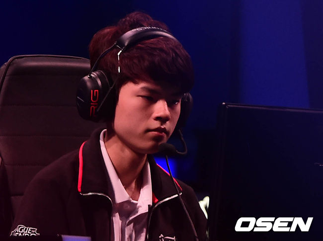 경기시작후 삼성 블루 데프트 김혁규가 경기에 임하고 있다.