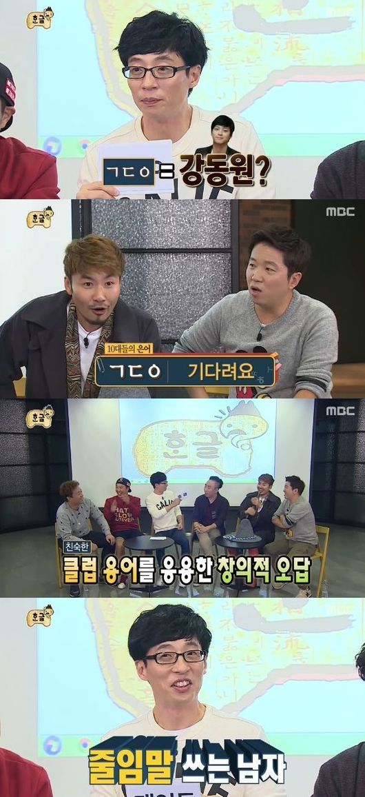 멤버들은 낫닝겐, ㅎㄹ 등의 단어를 듣고 그 뜻을 알지 못했다. 이어 ㄱㄷㅇ이라는 단어가 등장하자 박명수는 "강당", 노홍철은 "기도요", 유재석은 "강동원", 하하는 "김동완"이라고 해석했다.