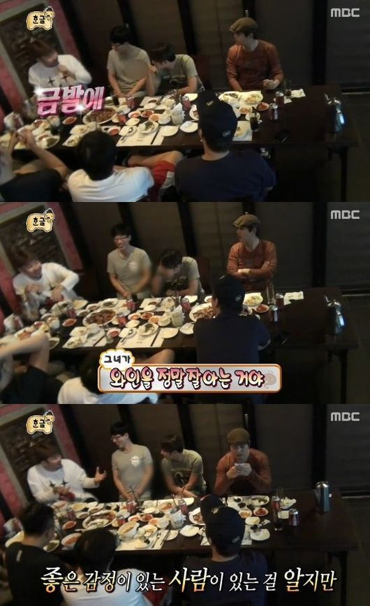 노홍철은 멤버들에게 "사라에 빠졌다"며 입을 열었다. 그는 "경리단길 갔다가 사람들과 친구가 됐다. 어떤 외국인이 춤을 추길래 봤는데 금발에"라면서 "이야기를 해봤는데 와인을 정말 잘 하더라"고 말했다. 노홍철은 여인의 외모보다 내적 매력을 느꼈다는 이야기를 이어갔다.