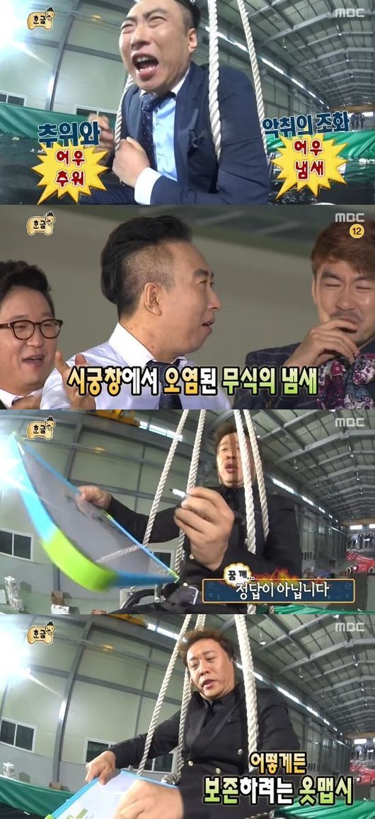 먼저 박명수에게 주어진 문제는 어쭙잖게를 제대로 써 내는 것. 그렇지 않으면 마련된 시궁창 물에 빠지는 벌칙이 기다리고 있었다.