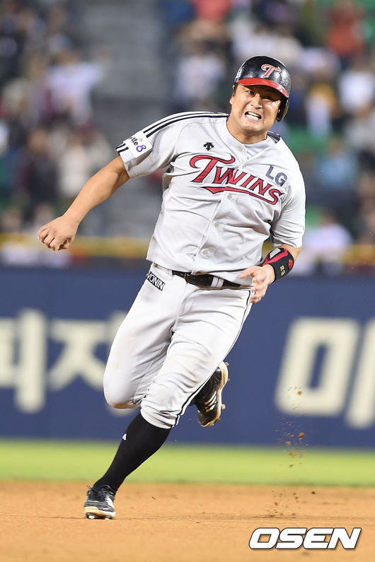 11일 오후 잠실야구장에서 열린 '2014 한국야쿠르트 세븐 프로야구' 두산 베어스와 LG 트읜스의 경기,8회초 1사 1루 오지환의 우전안타때 1루 주자 최경철 3루까지 진루하고 있다.