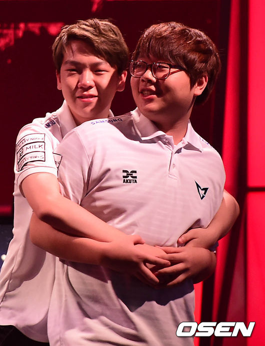 경기종료후 삼성 블루 이다윤과 화이트 허원석이 포옹하고 있다./greenfield@osen.co.kr